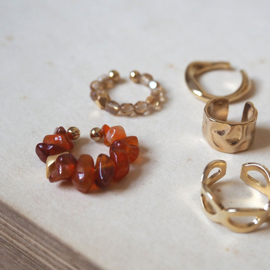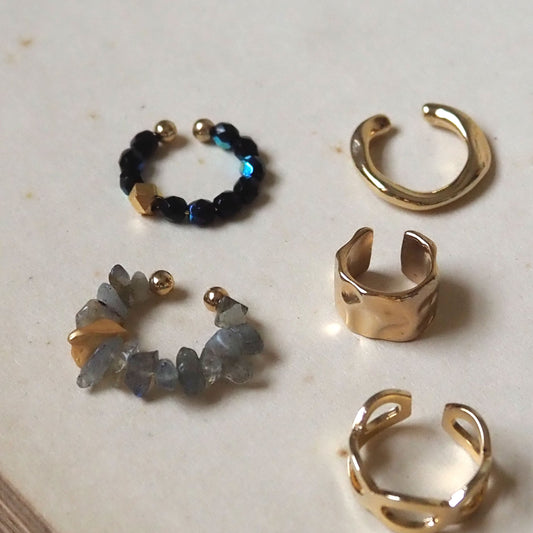 好主意! 3 組戒指手環與耳骨夾 | 大淡水珍珠、捷克珠、黃金 | 六月生日石 |