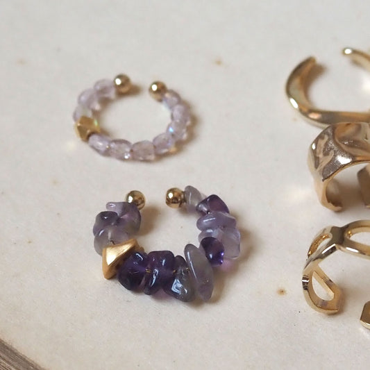 天然石 Sazare 水晶耳骨夾 | 四月生日石