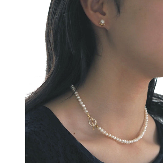 好主意!淡水珍珠項鍊/穿孔/耳環 | 2 件組 | 品質 AA+ | 適用於正式場合、學校入學儀式、幼兒園入學儀式、母親節